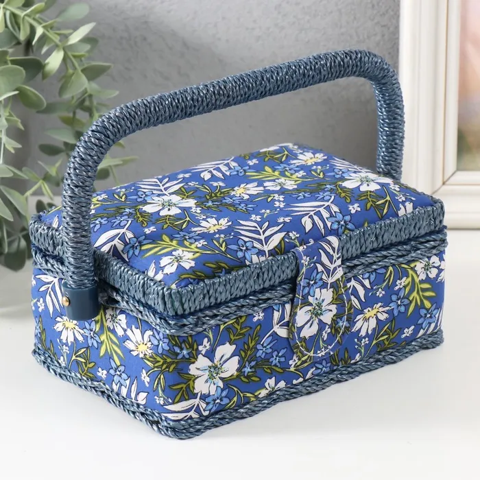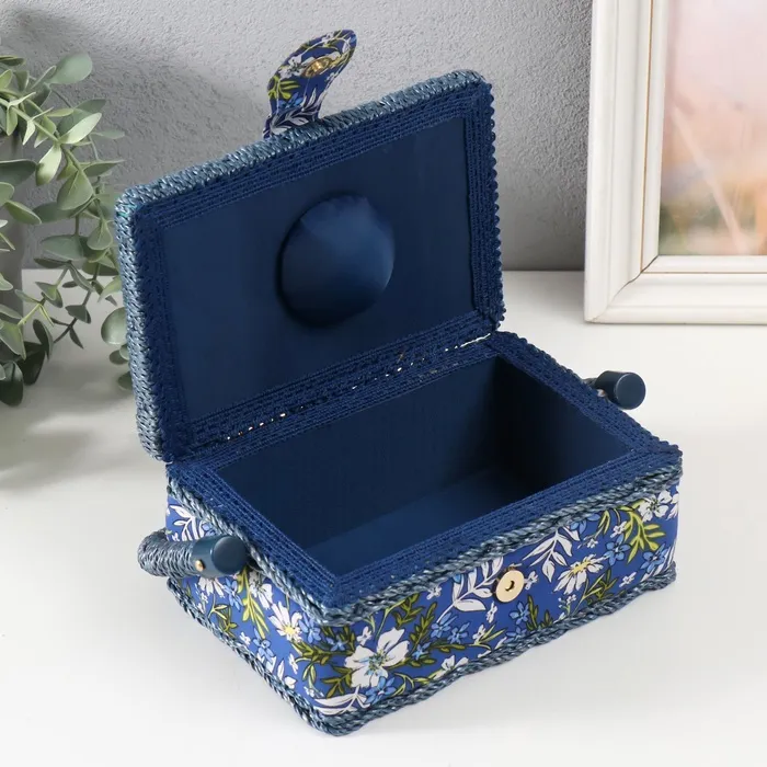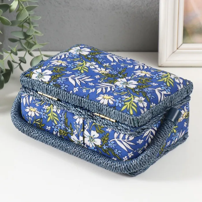 Шкатулка для рукоделия и шитья «Полевые цветы на синем», хранение ниток, иголок, мелочи, 18×12×9.5 см — Характеристики
