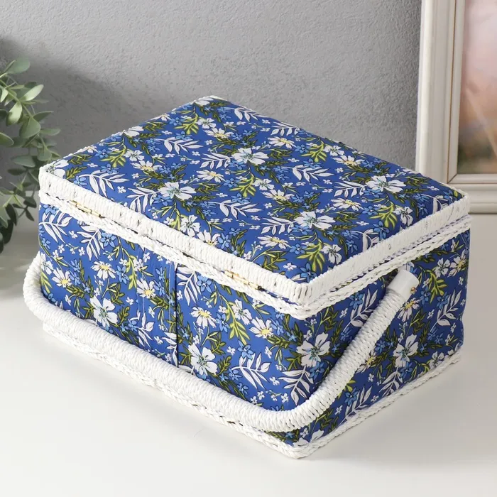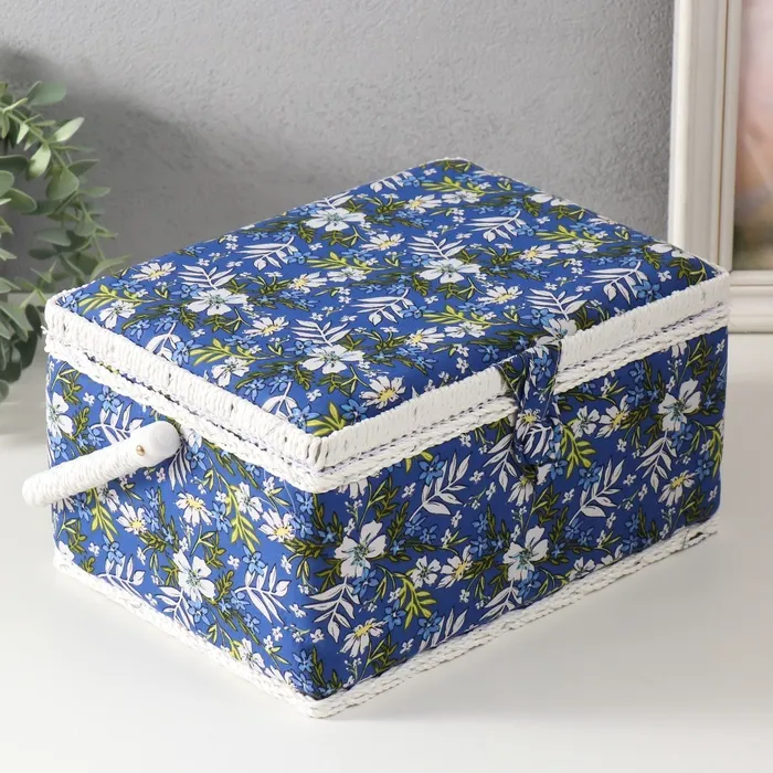 Шкатулка для рукоделия и шитья «Полевые цветы на синем», хранение ниток, иголок, мелочи, 19×26×14.5 см — Характеристики