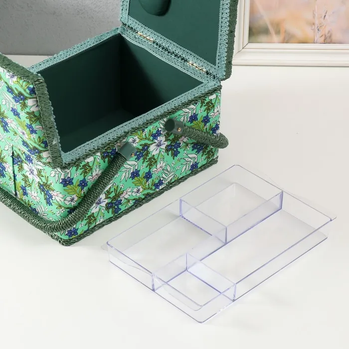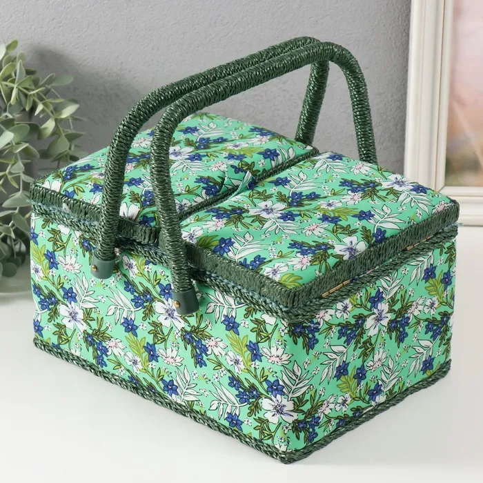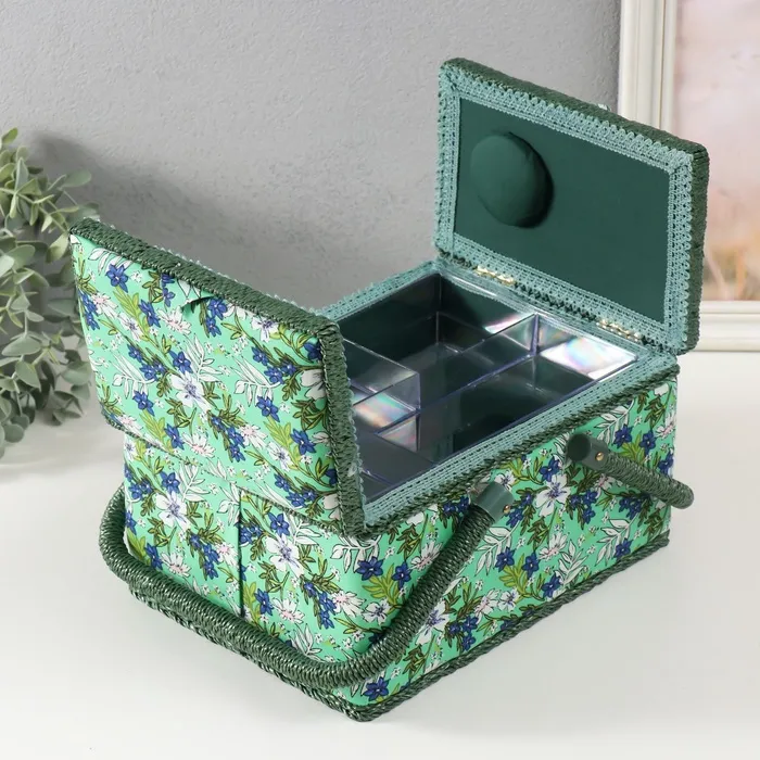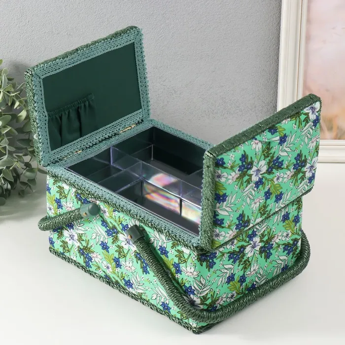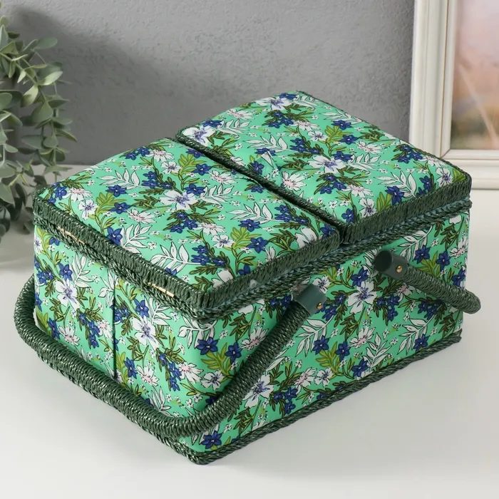 Шкатулка для рукоделия и шитья «Полевые цветы на зелёном», хранение ниток, иголок, мелочи, 19х26х14,5 см — Характеристики