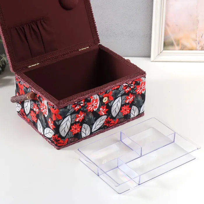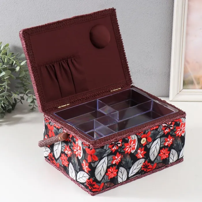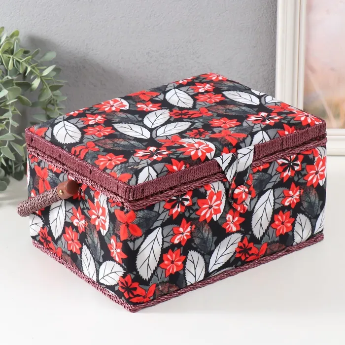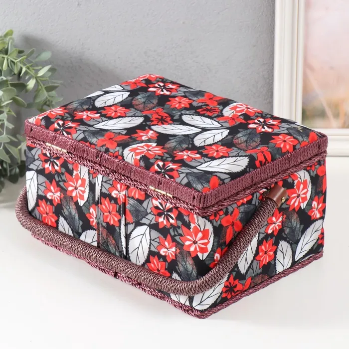 Шкатулка для рукоделия и шитья «Пуансеттия на чёрном», хранение ниток, иголок, мелочи, 19х26х14,5 см — Характеристики