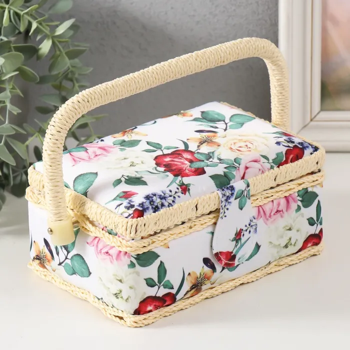 Шкатулка для рукоделия и шитья «Садовые цветы», хранение ниток, иголок, мелочи, 18х12х9,5 см — Характеристики