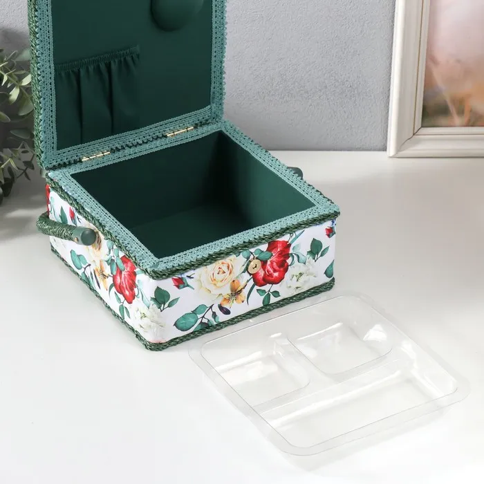 Шкатулка для рукоделия и шитья «Садовые цветы», хранение ниток, иголок, мелочи, 20×20×11 см — Характеристики