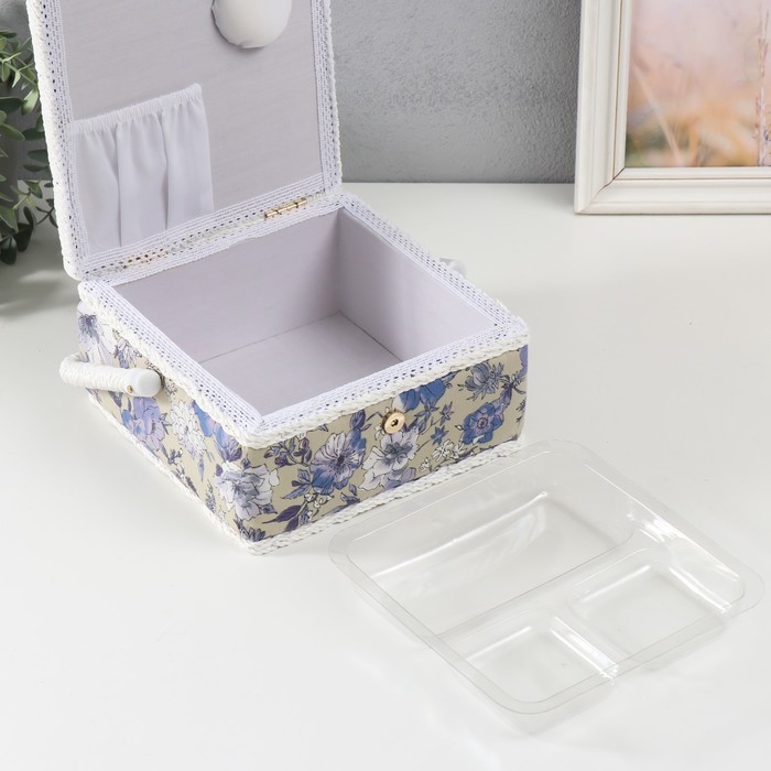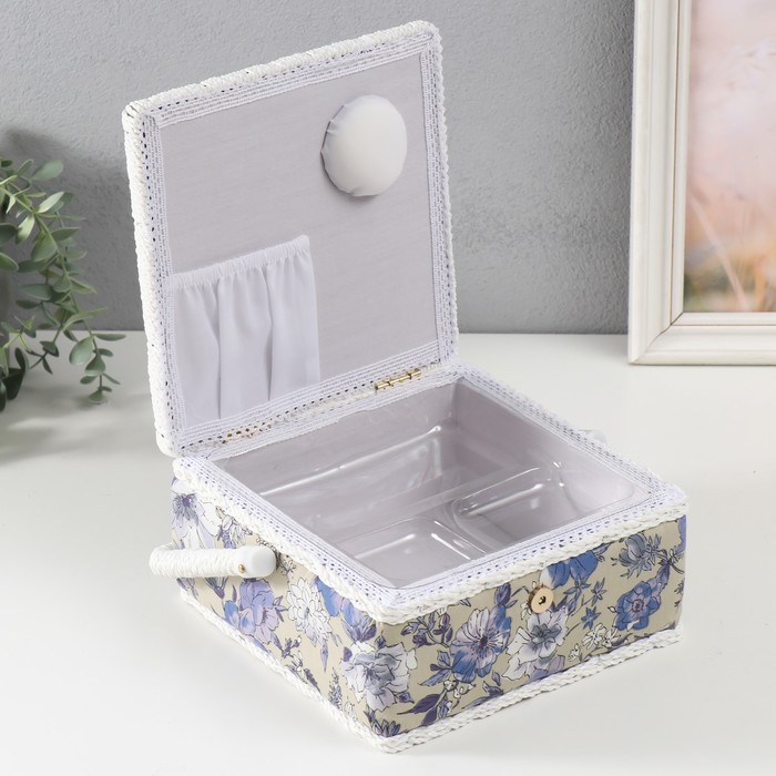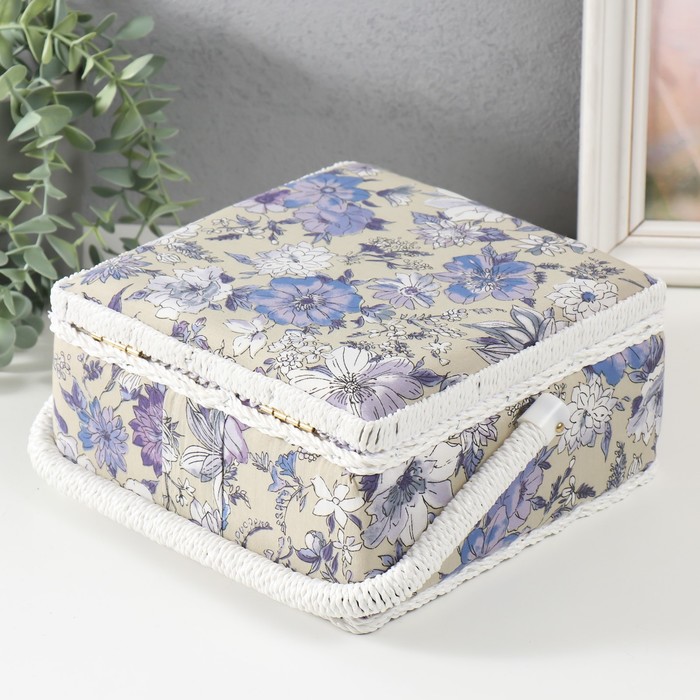 Шкатулка для рукоделия и шитья «Сиреневая цветочная поляна», хранение ниток, иголок, мелочи, 20×20×11 см — Характеристики