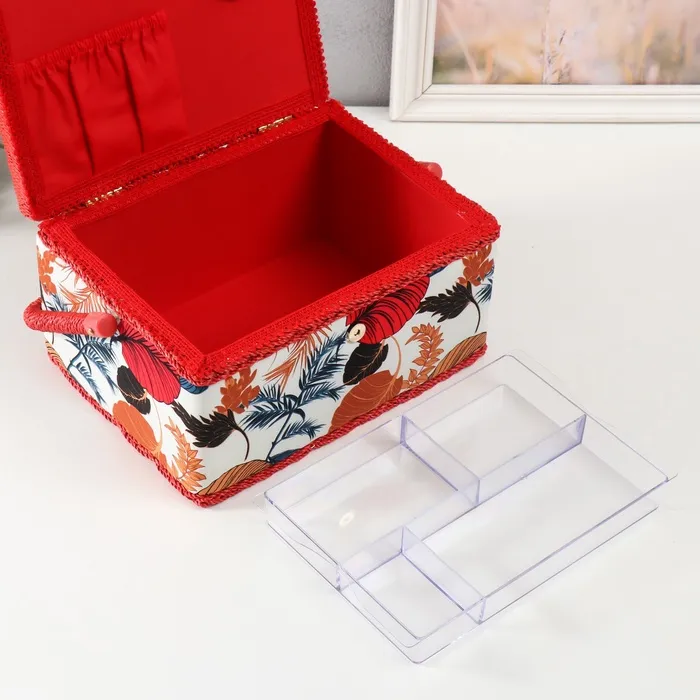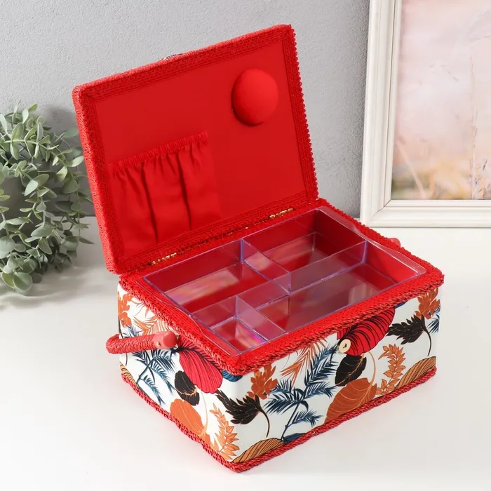 Шкатулка для рукоделия и шитья «Тропические листья», хранение ниток, иголок, мелочи, 19х26х14,5 см — Характеристики