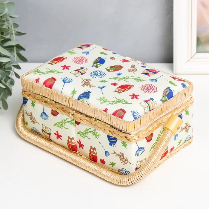 Шкатулка для рукоделия "Нарисованные совушки" 9,5х19,5х13 см — Характеристики
