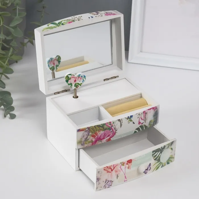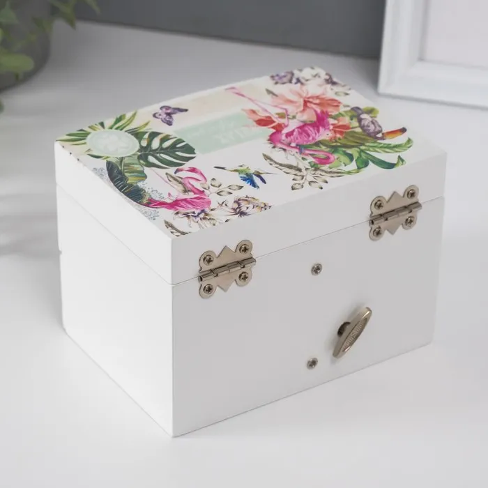 Шкатулка для украшений 1 ящик «Комод. Фламинго в тропиках», музыкальная, дерево, 9×10×13 см — Характеристики