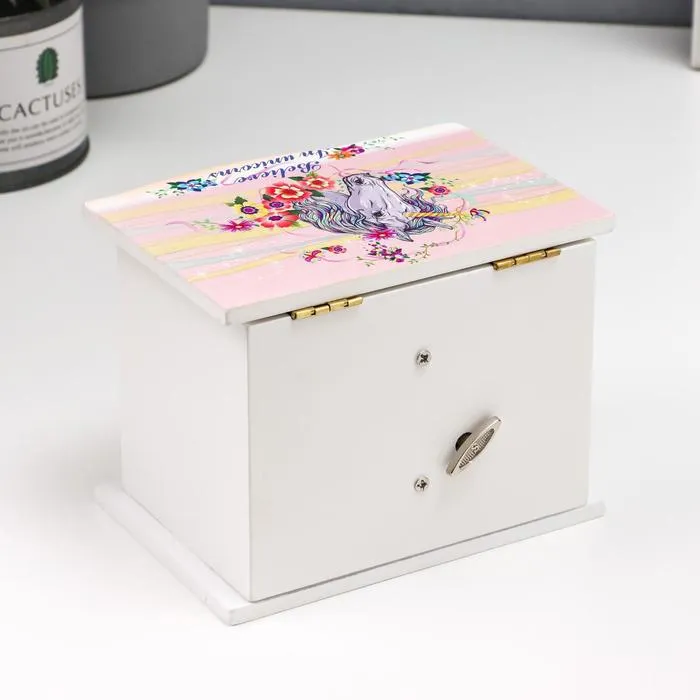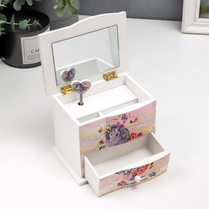 Шкатулка для украшений 1 ящик музыкальная «Комод. Единорог в цветах», дерево, 11×14.7×10.6 см — Характеристики