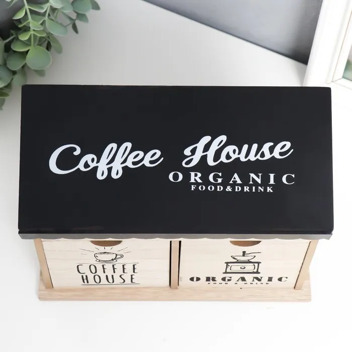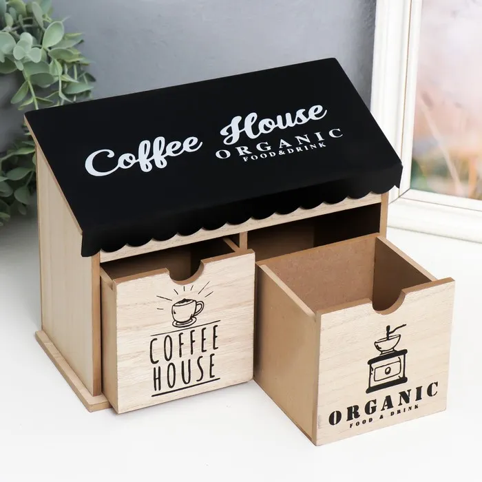 Шкатулка для украшений 2 ящика «Кофейный домик», дерево, 10.5×23.5×18 см — Характеристики