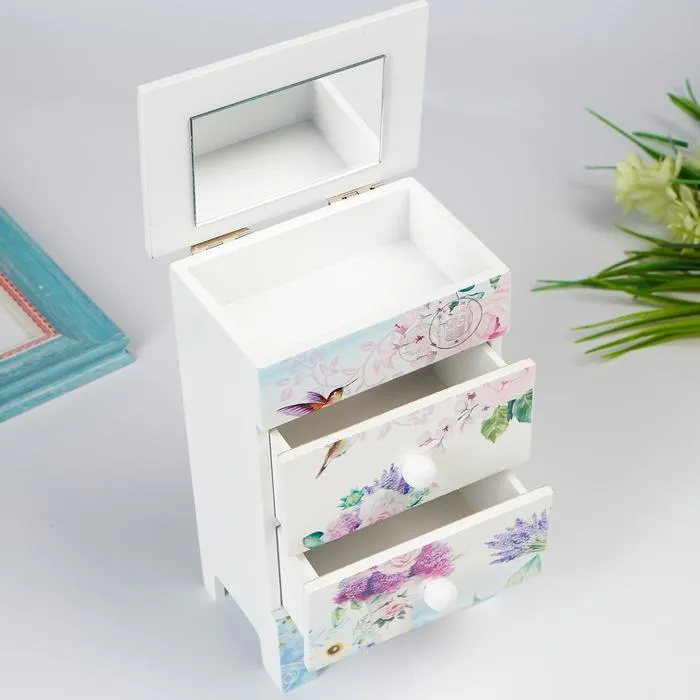 Шкатулка для украшений 2 ящика «Комод. Лаванда и розы», дерево, 18.5×7.5×11.8 см — Характеристики