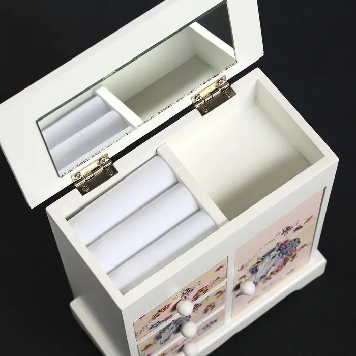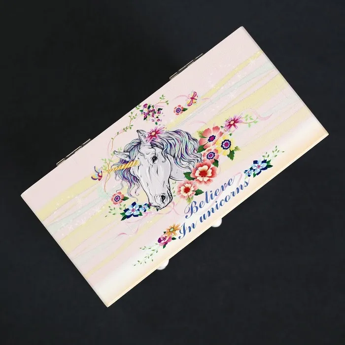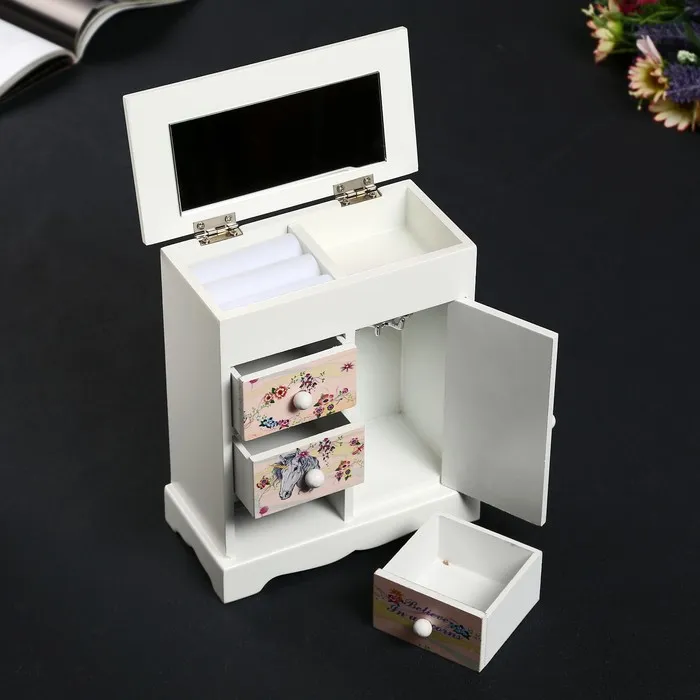 Шкатулка для украшений 3 ящика «Комод с дверцей. Единорог в цветах», дерево, 19×16×8 см — Характеристики