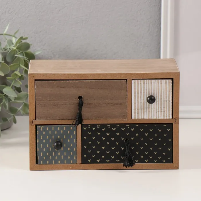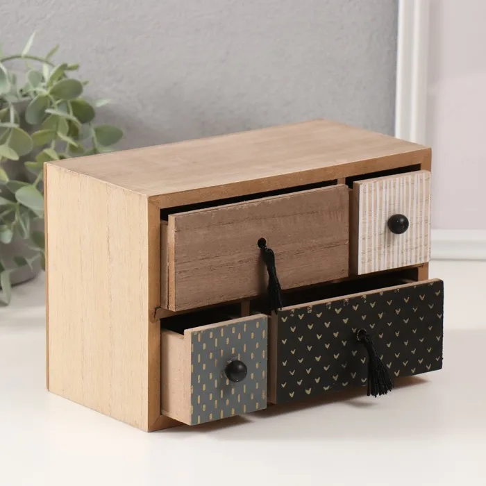 Шкатулка для украшений 4 ящика «Комод. Разные фактуры», дерево, 10×20×13.5 см — Характеристики