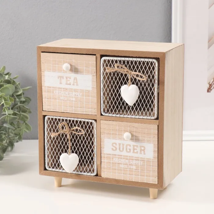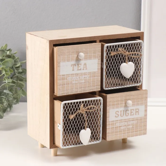 Шкатулка для украшений 4 ящика «Комодик с сердечками», дерево, 10×20×23 см — Характеристики