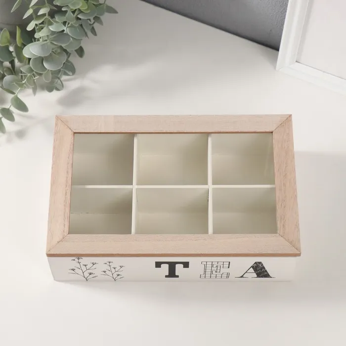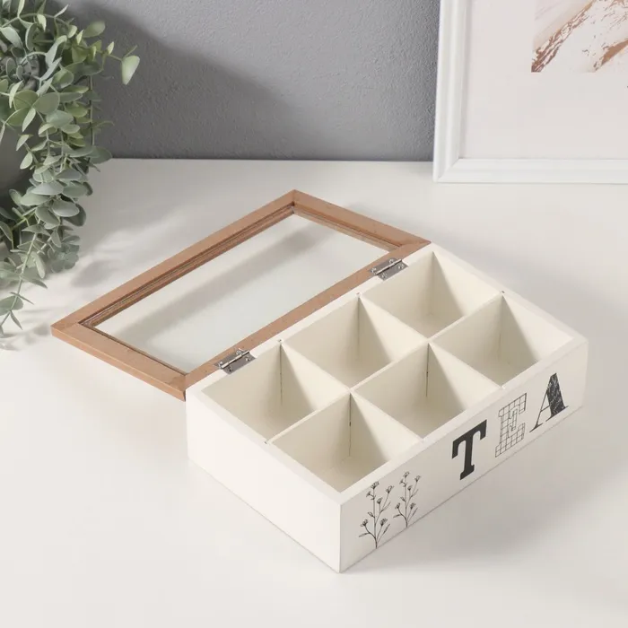 Шкатулка для украшений 6 делений «Любимый чай», дерево, 23×15×7 см — Характеристики