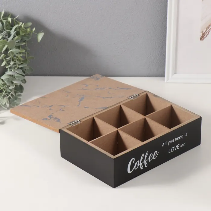 Шкатулка для украшений 6 делений «Любовь и кофе», дерево, 23×15×7 см — Характеристики
