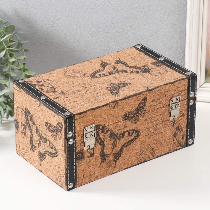 Шкатулка для украшений «Бабочки и старинное письмо»,, дерево и искусственная кожа, 24×14×12 см — Характеристики