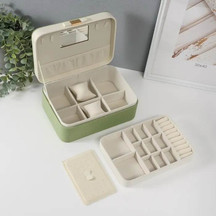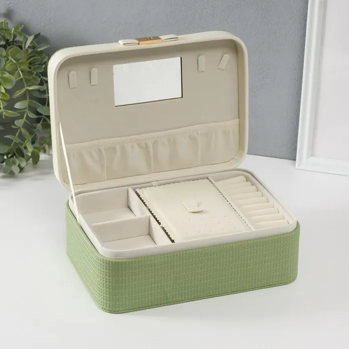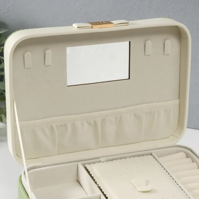 Шкатулка для украшений «Бантик», с зеркалом, искусственная кожа, бело-зелёная, 17×23.5×10 см — Характеристики