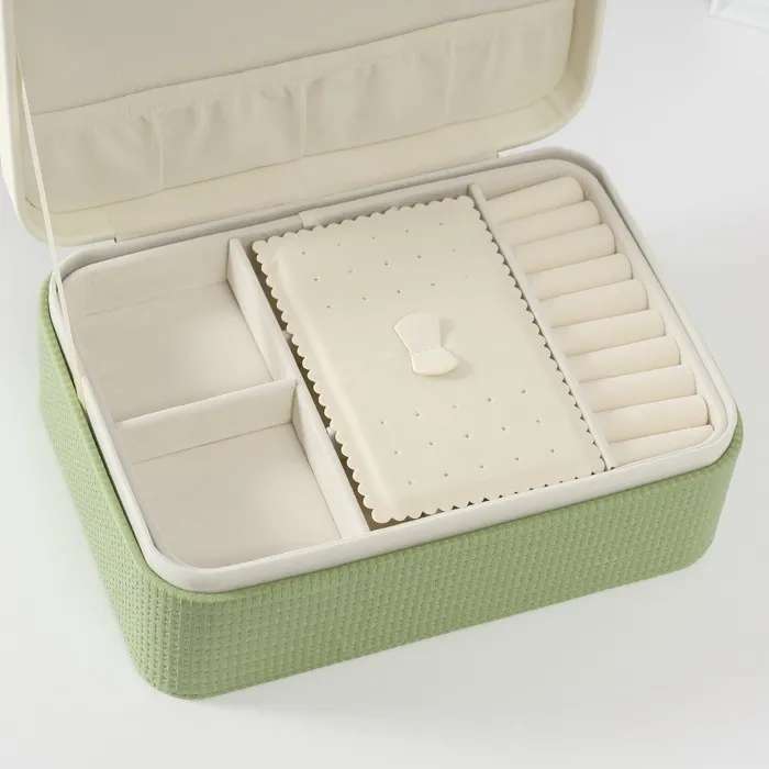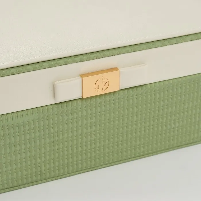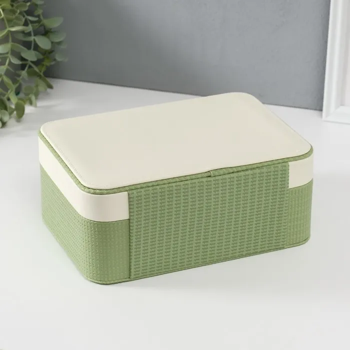 Шкатулка для украшений «Бантик», с зеркалом, искусственная кожа, бело-зелёная, 17×23.5×10 см