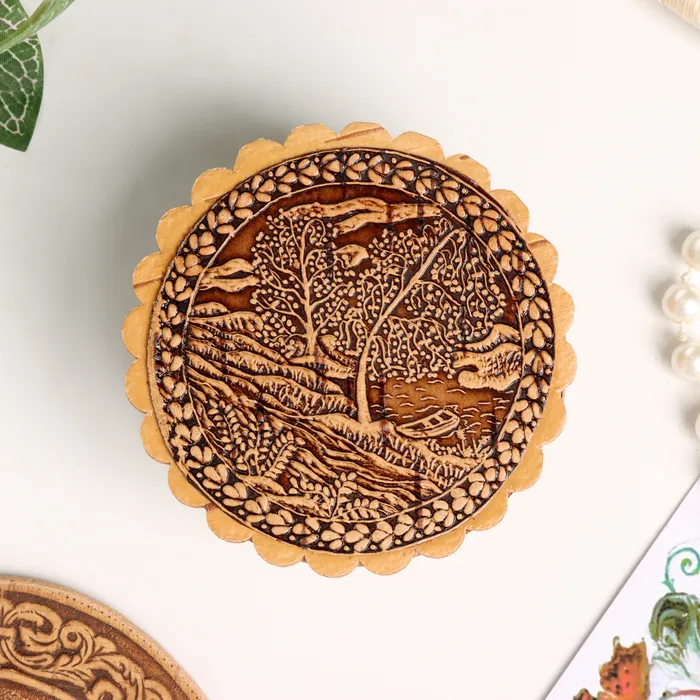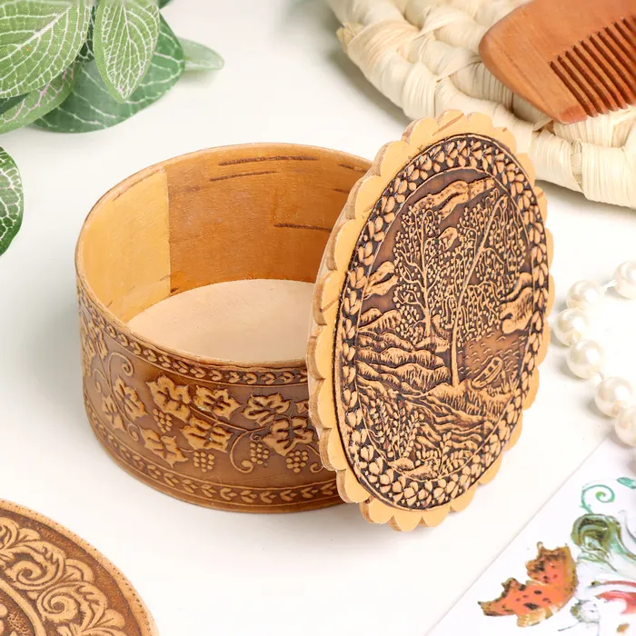 Шкатулка для украшений «Берёзки у реки», 70×35 мм, береста — Характеристики