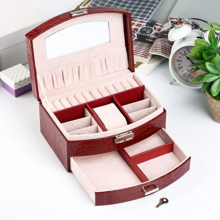 Шкатулка для бижутерии – настоящая находка для женщины, которая привыкла всегда выглядеть безупречно и подчеркивать свое очарование эффектными аксессуарами. Классически элегантная снаружи, эта шкатулка оказывается очень удобной и вместительной внутри. Она снабжена отделениями, предназначенными для разных украшений: колец, браслетов, часов, колье, цепочек, серег. Изнутри шкатулка покрыта мягким материалом, а снаружи – искусственной кожей, эффектной и качественной. Такую шкатулку можно смело вручать представительнице прекрасного пола на Новый год или 8 марта и быть уверенным в том, что этот подарок будет оценен по достоинству.