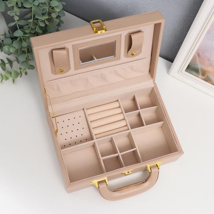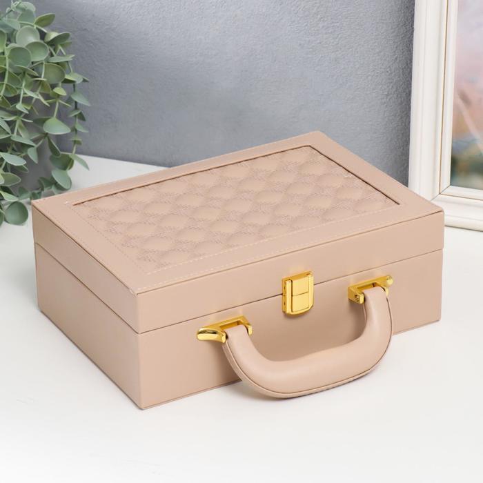 Шкатулка для украшений «Чемодан. Крупная клетка», кожзам, бежевая 9×25×17 см — Характеристики