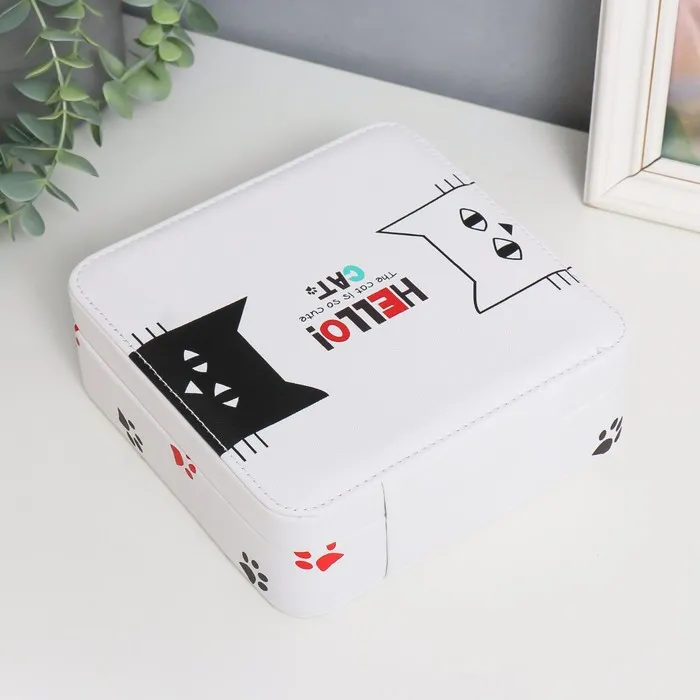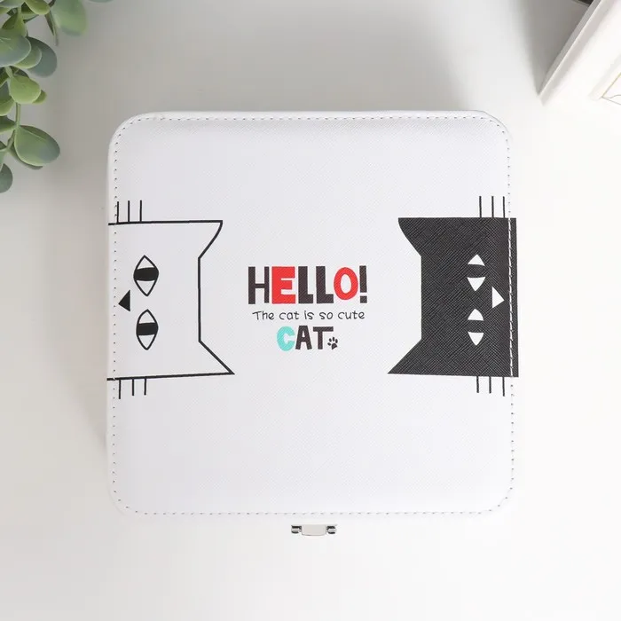 Шкатулка для украшений «Чёрный и белый кот», с зеркалом, искусственная кожа, с замком, 6.5×18×18 см — Характеристики