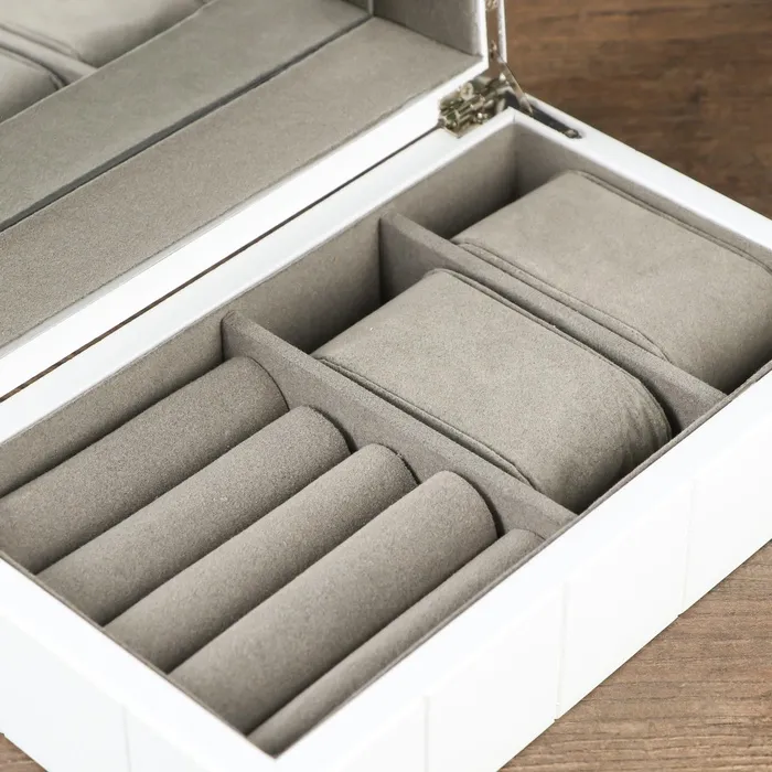 Так приятно любоваться своими украшениями: скромными и яркими, изящными и массивными. А еще приятнее вынимать их из изысканной шкатулки, служащей достойным обрамлением для каждого из них. Шкатулка для украшений дерево «Шарм», белая, под часы, с зеркалом, 20,5х8х12 см будет замечательным подарком женщине, которая привыкла всегда выглядеть безупречно и подчеркивать неповторимую красоту своего образа разнообразными аксессуарами.