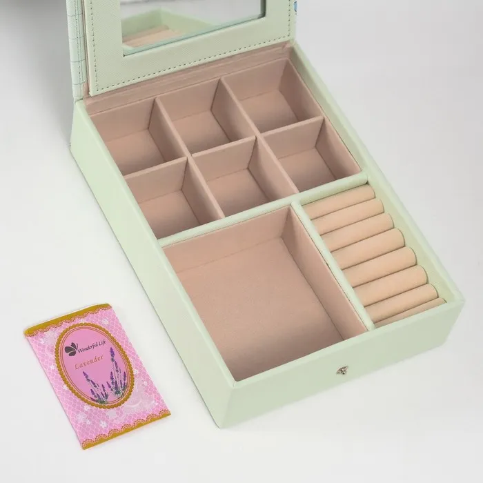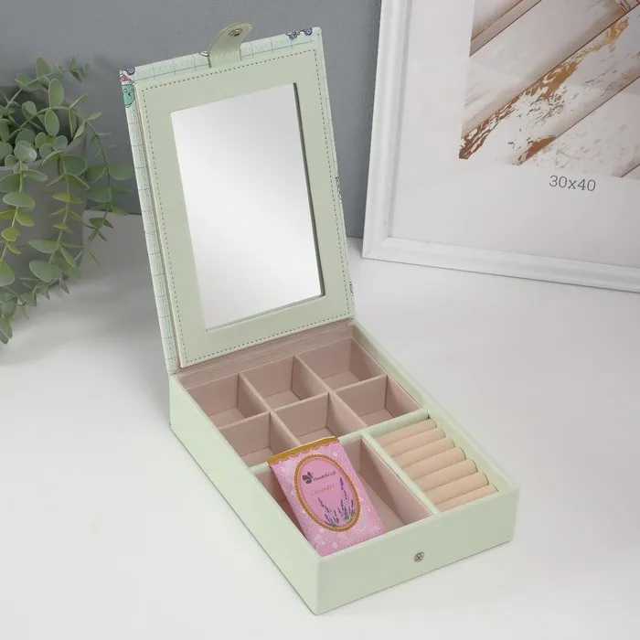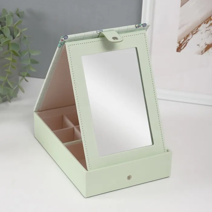Шкатулка для украшений «Динозаврики», с зеркалом, искусственная кожа, зелёная, 15×21.5×5.5 см — Характеристики