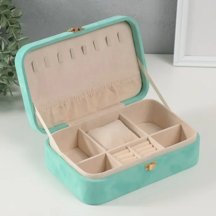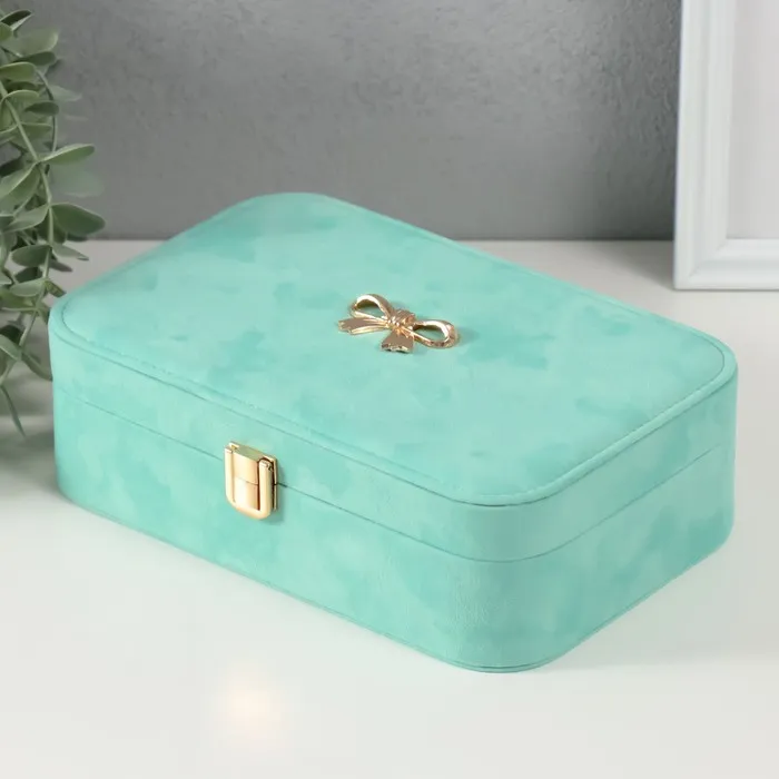 Шкатулка для украшений для украшений «Бант», текстиль, голубой, 22×14.5×7 см — Характеристики