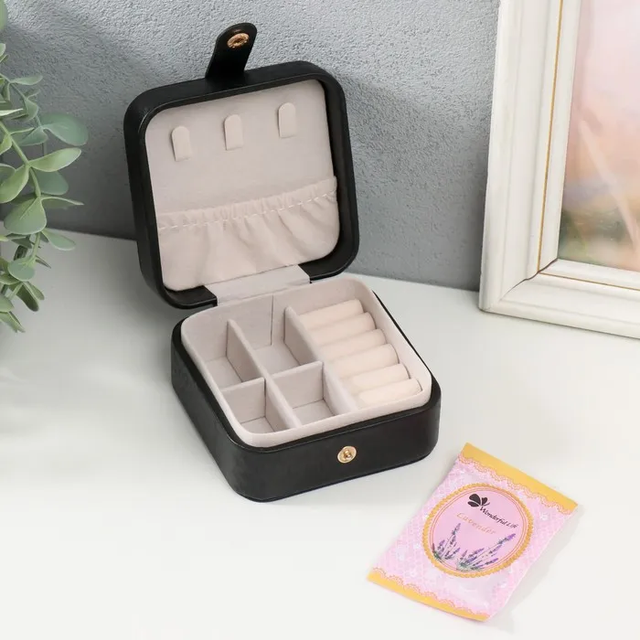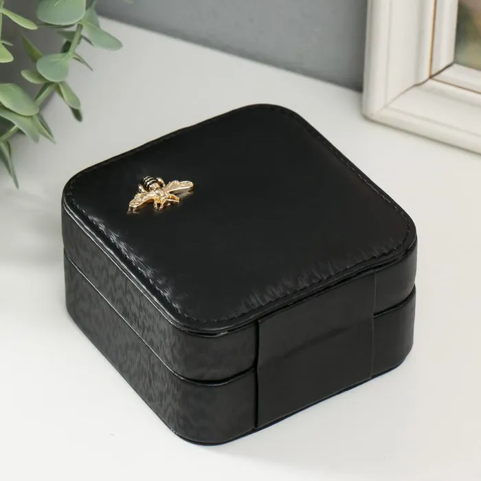 Шкатулка для украшений для украшений «Перелив с украшением», текстиль, чёрная, 10×10×6 см — Характеристики