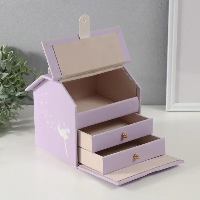 Шкатулка для украшений «Домик. Зайка», искусственная кожа, сирень, 16.5×19×16.5 см — Характеристики