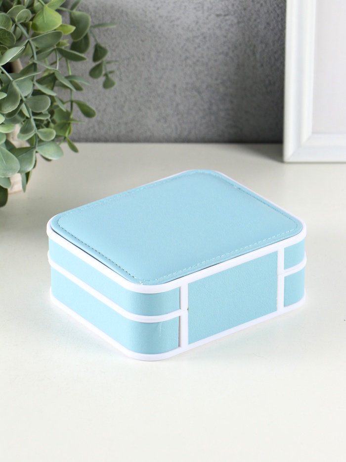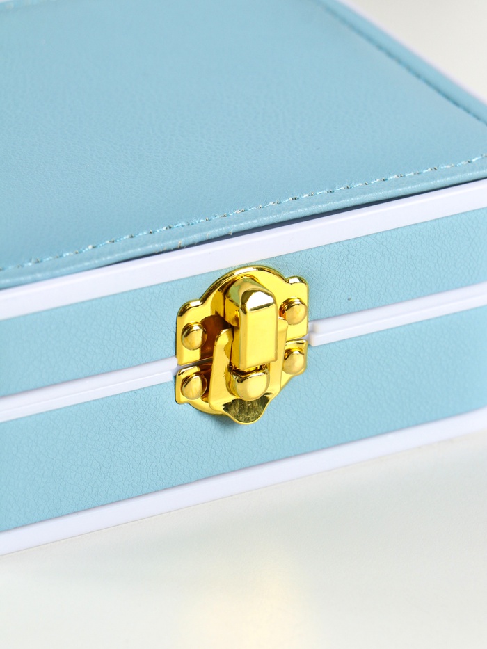 Эта голубая шкатулка для бижутерии станет надёжным хранилищем для вашей коллекции. Компактный прямоугольный корпус с элегантной текстурой под кожу легко помещается на туалетном столике или в дорожной сумке. Внутри вас ждёт продуманный порядок: шесть отдельных ячеек и десять мягких держателей для серег и цепочек, чтобы каждая вещь лежала на своём месте.