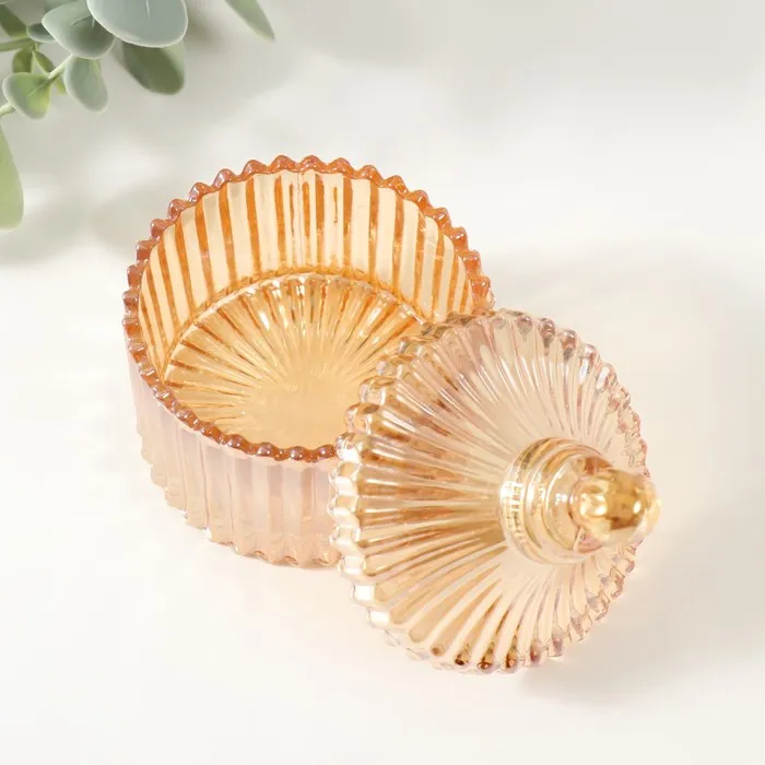 Шкатулка для украшений «Гофре и купол», стекло, прозрачная карамель, 6.5×6.5×8.5 см — Характеристики
