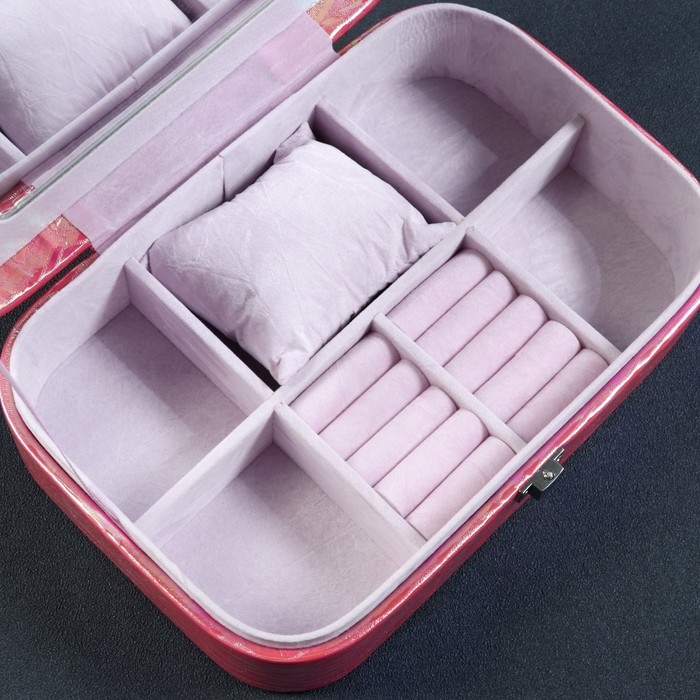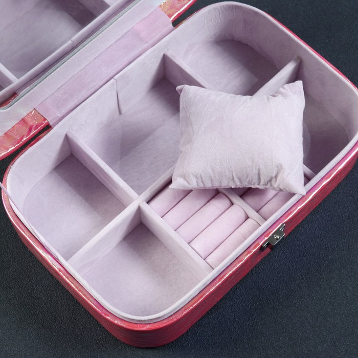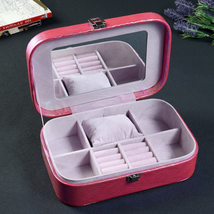 Шкатулка для украшений и часов 1 отделение «Волна с переливами», искусственная кожа, ярко-розовая, 6.5×22×15 см — Характеристики