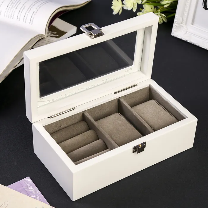 Шкатулка для украшений и часов 2 отделения «Стиль», дерево, белая, 10.5×7×19.2 см — Характеристики