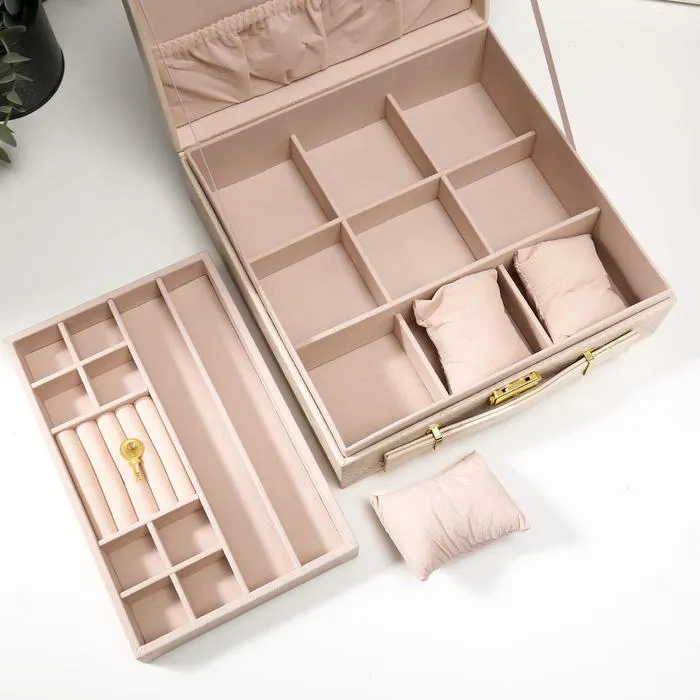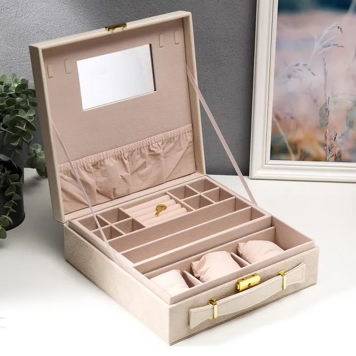 Шкатулка для украшений и часов 3 отделения «Клетка. Беж чемодан», искусственная кожа, 9×26×26 см — Характеристики