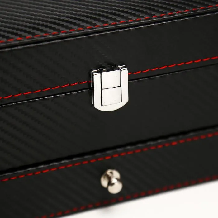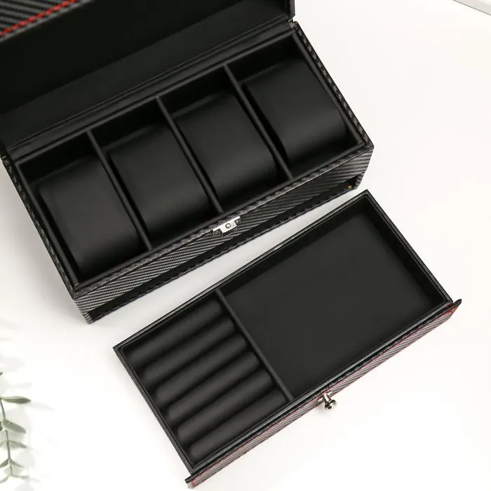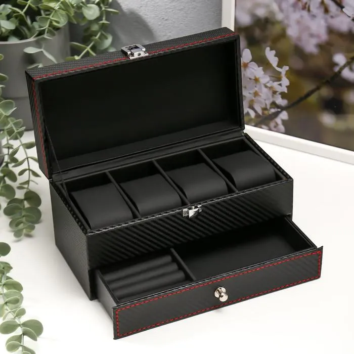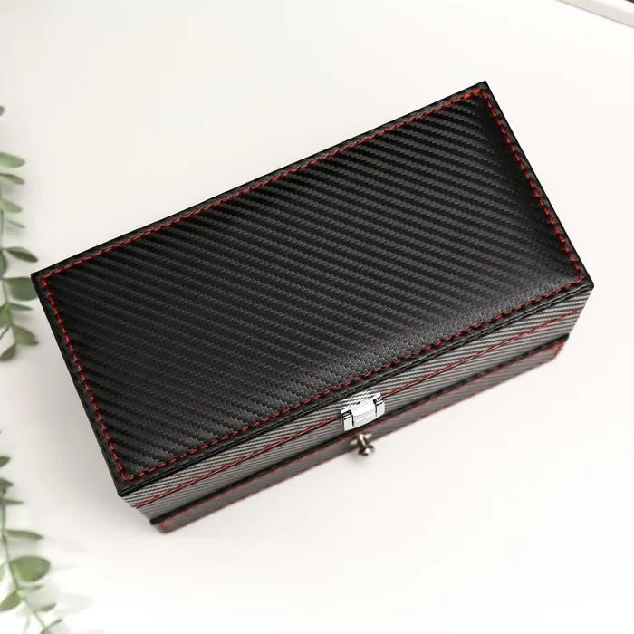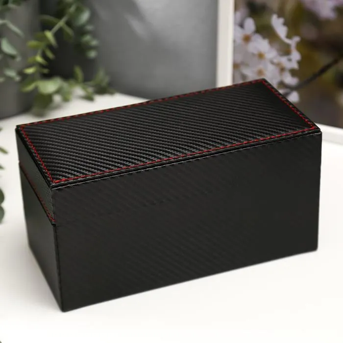 Шкатулка для украшений и часов 4 отделения «Чёрная с красной нитью», искусственная кожа, 11×22.5×11.5 см — Характеристики
