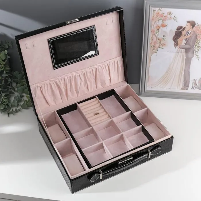 Шкатулка для украшений и часов 4 отделения «Чёрный чемоданчик», искусственная кожа, 9×32.5×26 см — Характеристики