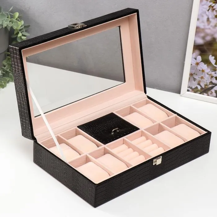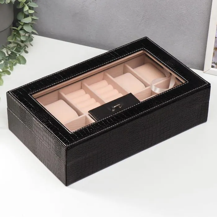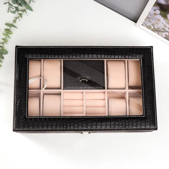 Шкатулка для украшений и часов 8 отделений «Рептилия индиго», искусственная кожа, 9.5×33×20 см — Характеристики