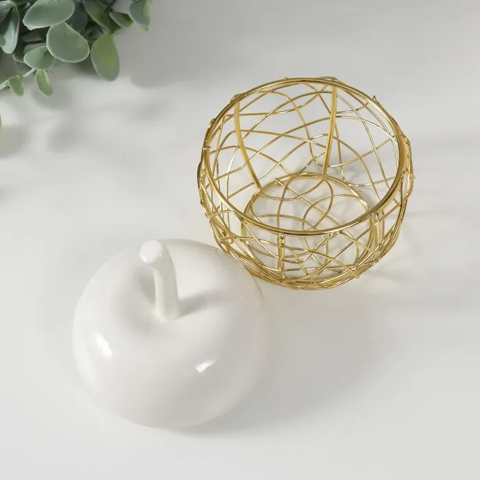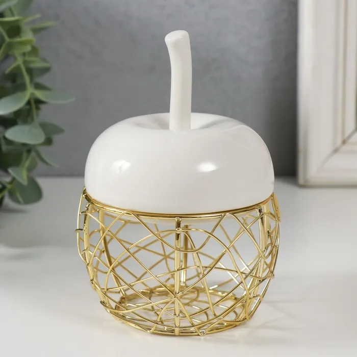 Шкатулка для украшений «Яблочко», керамика, металл, белая, 8.5×8.5×12 см — Характеристики