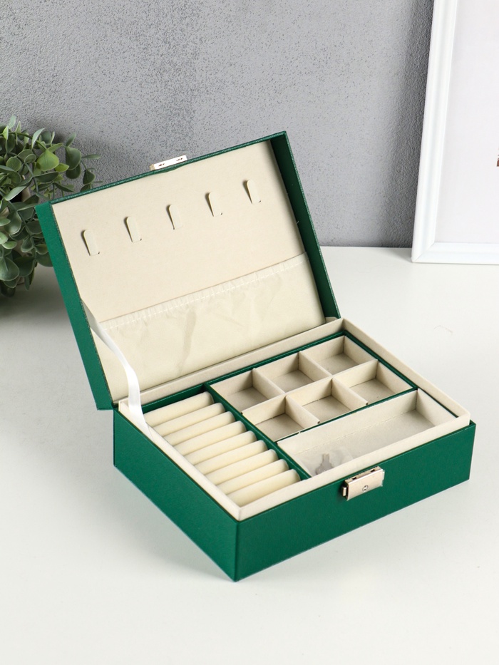 Шкатулка для украшений Isabel, съёмная подставка, тёмно-зелёная, 23.5×17×8.7 см — Характеристики