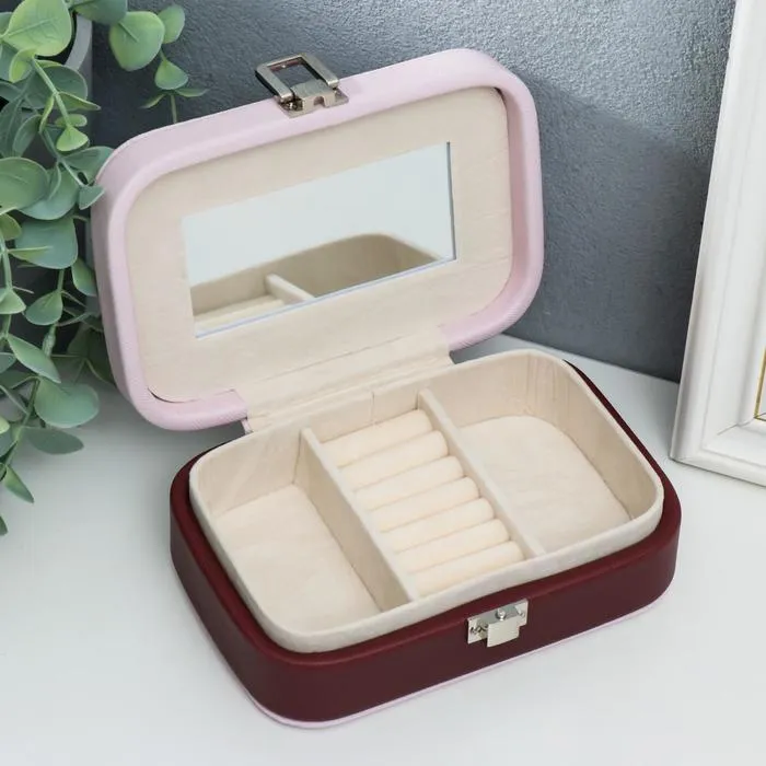 Шкатулка для украшений «Кактусы», с зеркалом, искусственная кожа, с замком, нежно-розовая, 5×15×10 см — Характеристики