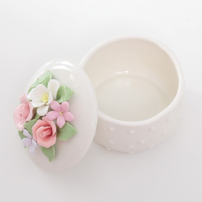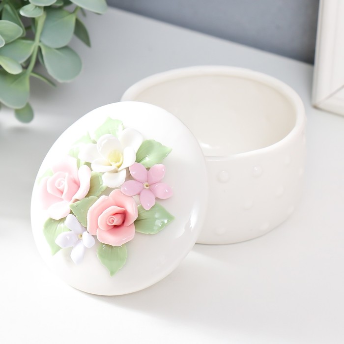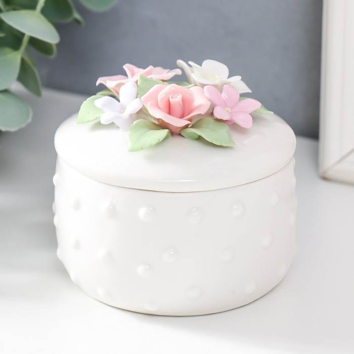 Шкатулка для украшений керамика «Цветочный сад. Горошек», белая, 8×8×8 см — Характеристики