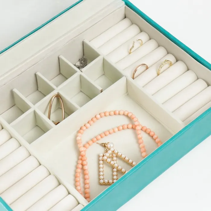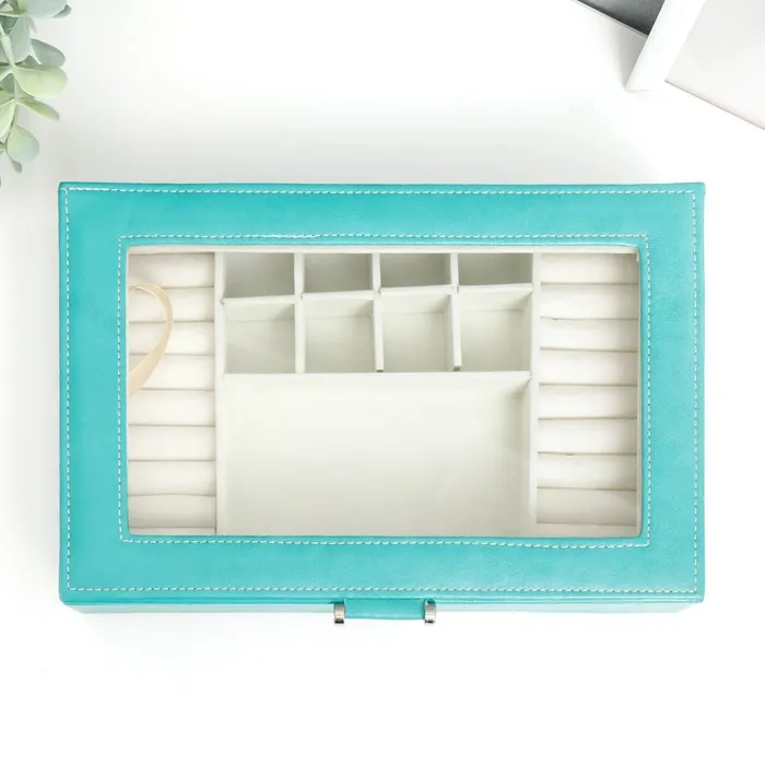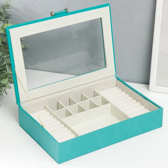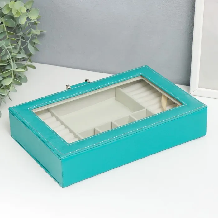 Шкатулка для украшений «Хэмптонс», с зеркалом, искусственная кожа, с замком, голубая, 5.5×27×18 см — Характеристики