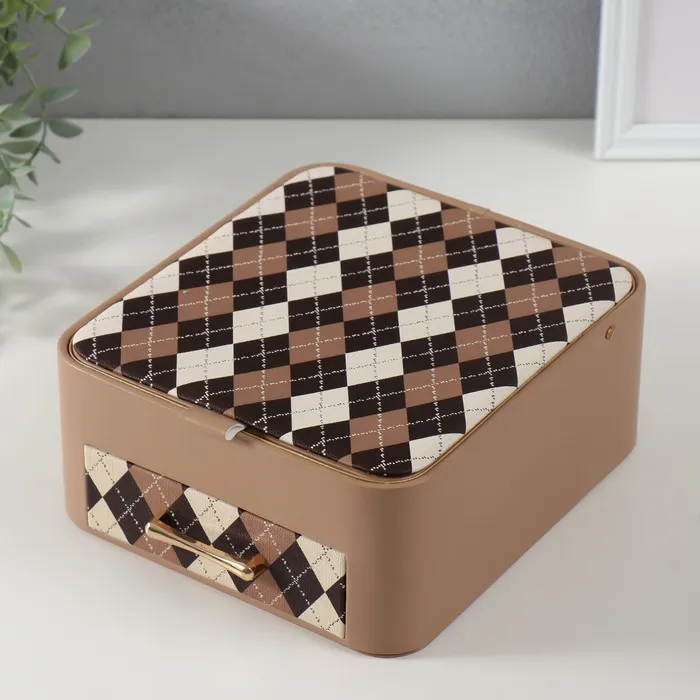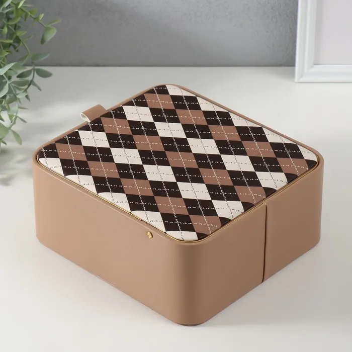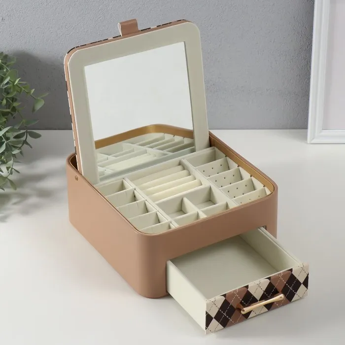 Шкатулка для украшений «Клетка», с зеркалом, искусственная кожа, бежевая, 20×22.5×9.5 см — Характеристики