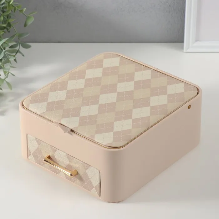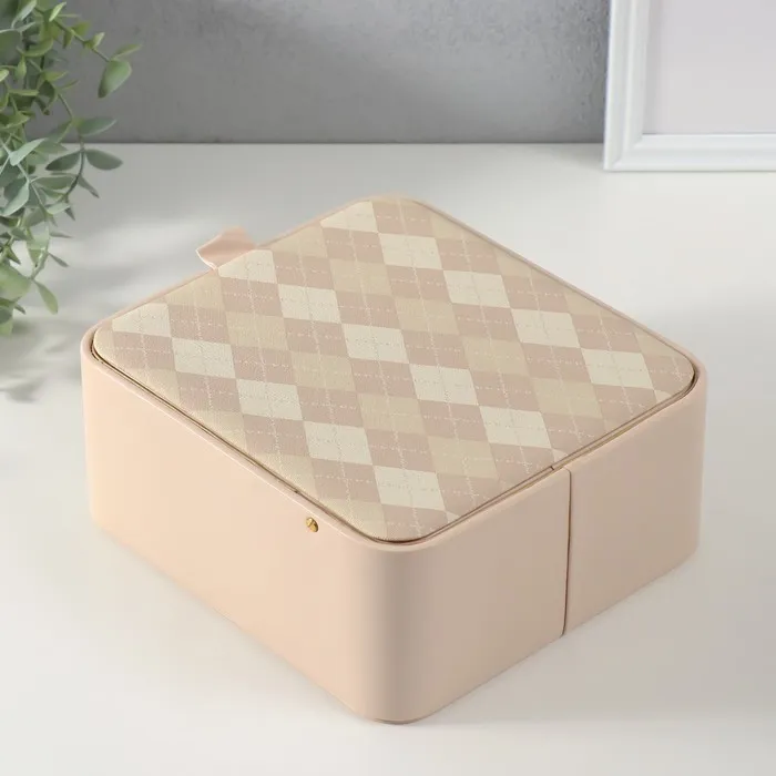 Шкатулка для украшений «Клетка», с зеркалом, искусственная кожа, молочная 20×22.5×9.5 см — Характеристики