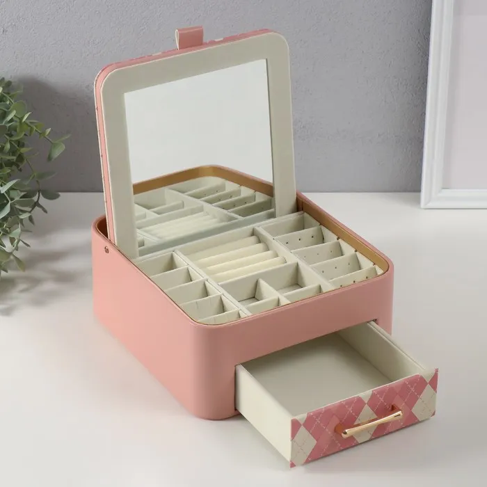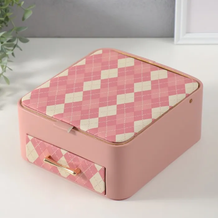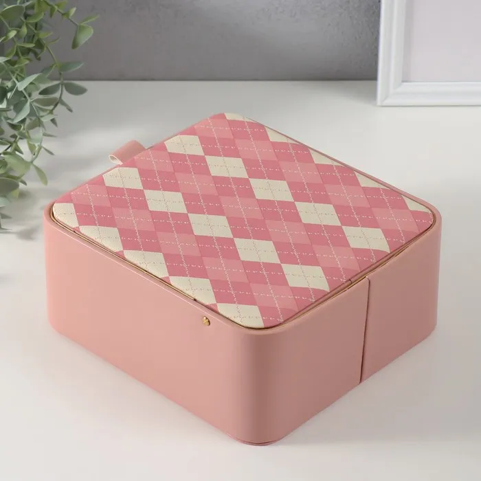 Шкатулка для украшений «Клетка», с зеркалом, искусственная кожа, розовая, 20×22.5×9.5 см
