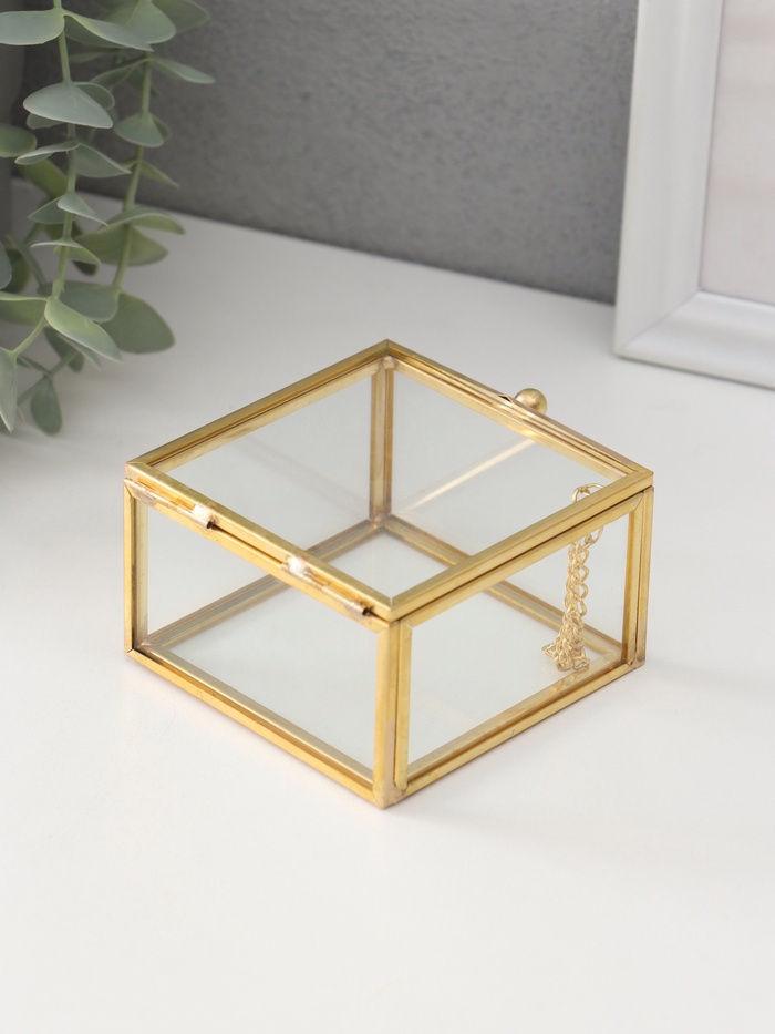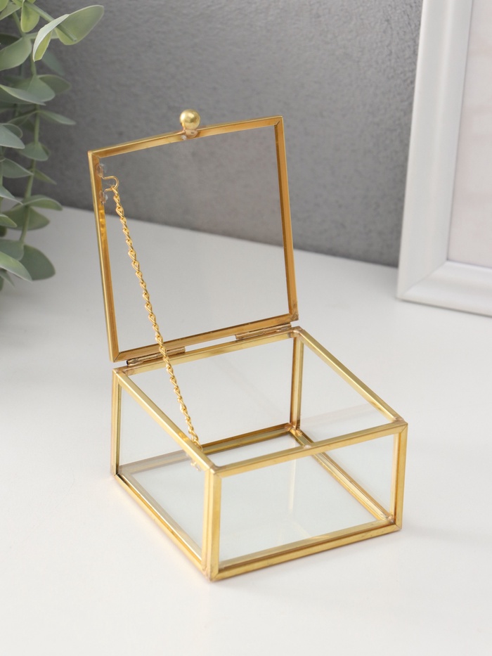 Шкатулка для украшений (колец, колье, серёг) «Прямоугольник», 8×8×5 см, стекло — Характеристики