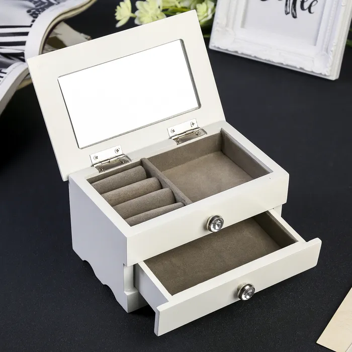 Шкатулка для украшений «Комод с ящиком», дерево, белая, 9×10×16 см — Характеристики