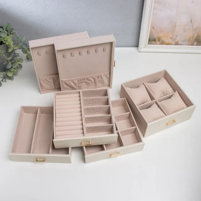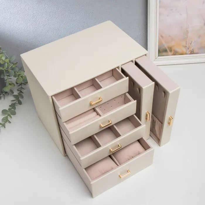 Шкатулка для украшений «Комод с золотистыми ручками», искусственная кожа, белая, 16.3×18×22.5 см — Характеристики