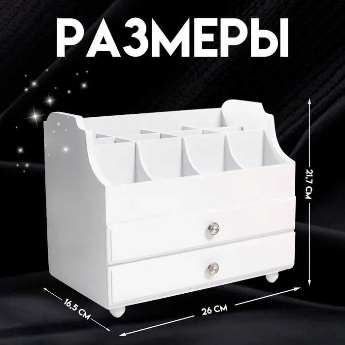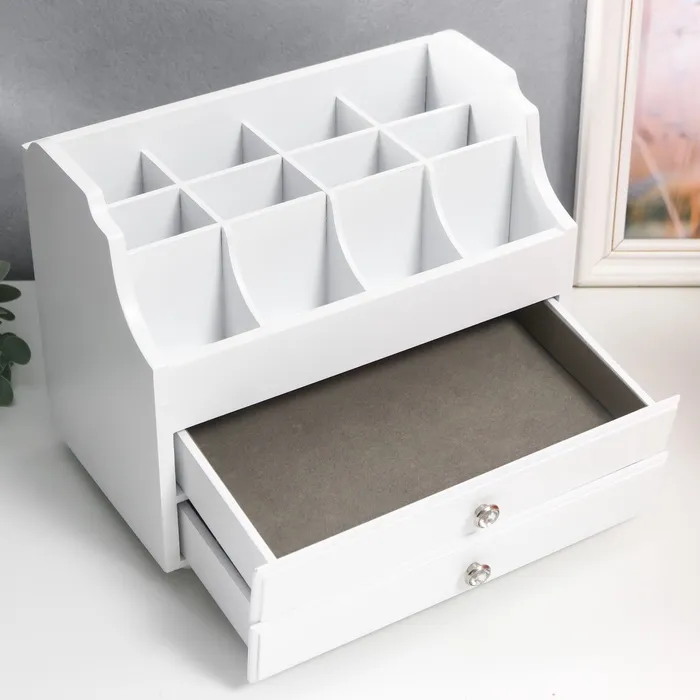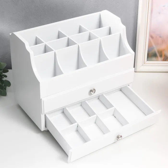 Шкатулка для украшений, косметики дерево, 2 ящика, белая, с ящичками, 26х16,5х21,7 см — Характеристики